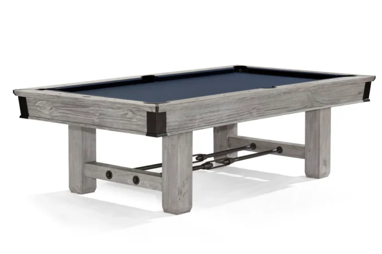 Nothing says “rack ’em up” like the rustic-meets-industrial charm of the Canton pool table. With its artful hand hammered sights and aged metal turnbuckle stretchers, corners and hardware, this eight-foot black forest or rustic gray finish table is the perfect marriage of proud craftsmanship and industrial design.