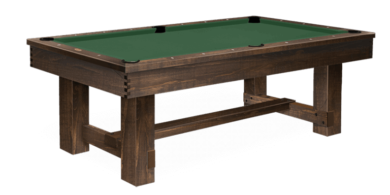The Breckenridge Pool Table is made from Solid Pine and features natural characteristics of live edge wood along with bandsaw distressing, rustic bolts and genuine buffalo nickel sights. All Olhausen Pool tables are hand-crafted at our 250,000 sq. ft. manufacturing facility in Portland, TN and feature Accu-Fast Cushions and our Lifetime Warranty.