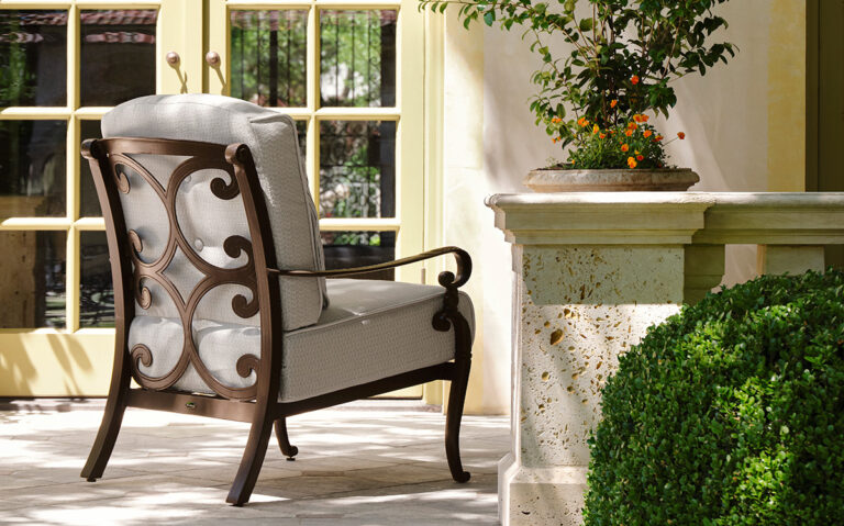 Avondale is a cast aluminum collection comprised both of cushion and sling pieces that is elegant and luxurious with intricate detail and the craftsmanship and comfort that is synonymous with Woodard